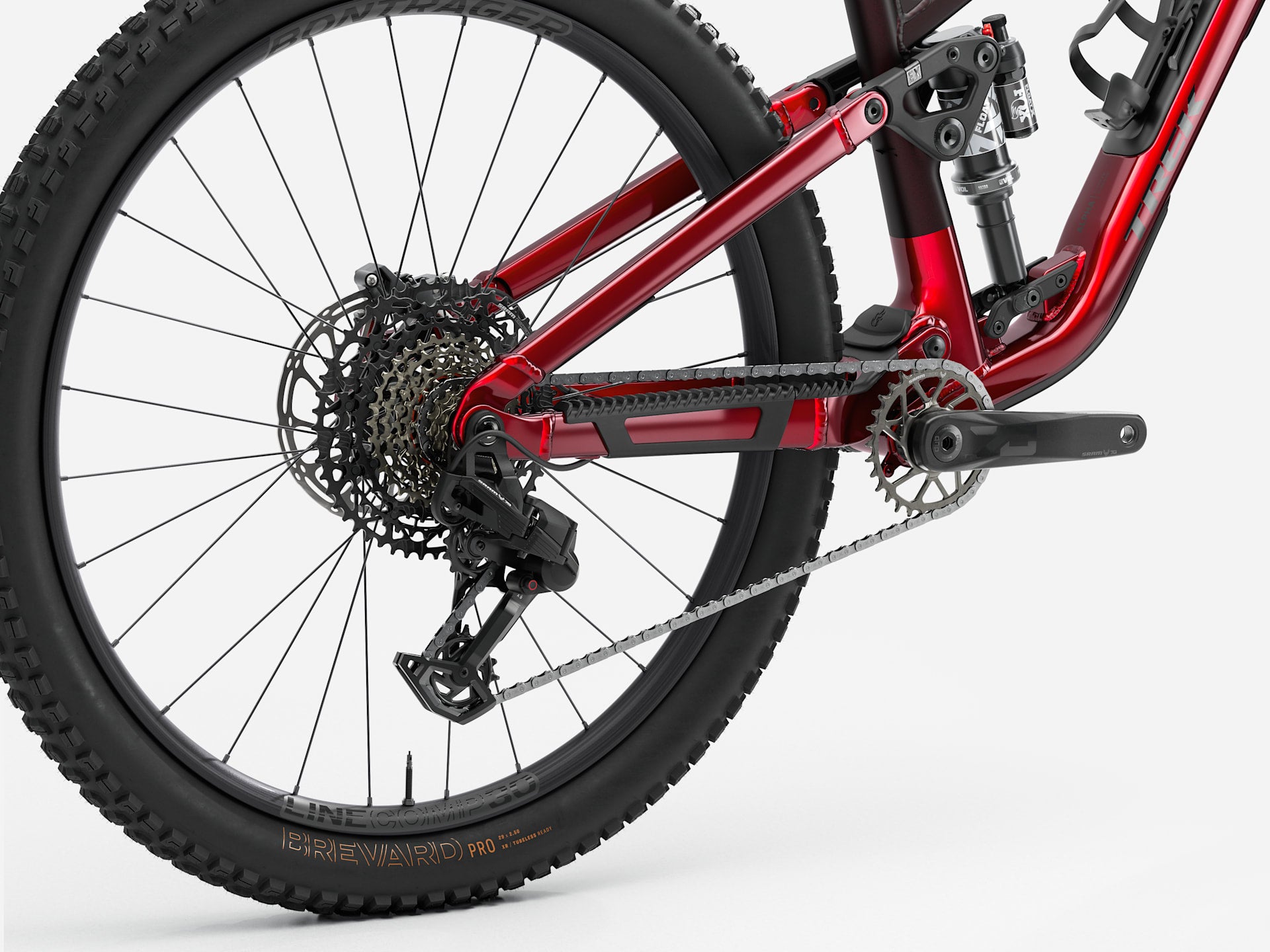 The Fuel EX 8 is a confident and versatile trail bike built to get after it. It comes ready to rip with an Alpha NEXT Platinum frame, Fox performance suspension package with 145 mm/150 mm travel (rear, front), alloy Bontrager Line wheels and a SRAM Eagle 70 transmission that keeps shifts smooth, even under load. It's topped off with 4-piston SRAM DB 8 hydraulic disc brakes to keep you stopping on a penny.
